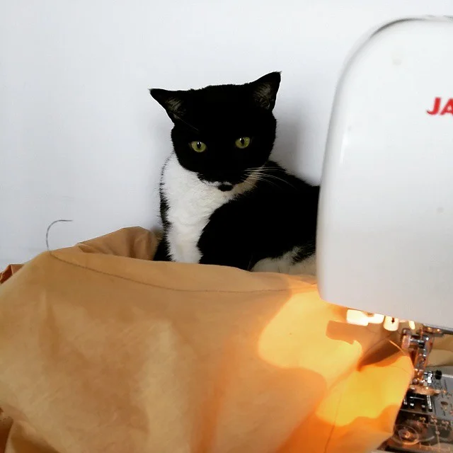 This is Midnight. She bothers Ilona when she tries to sew.